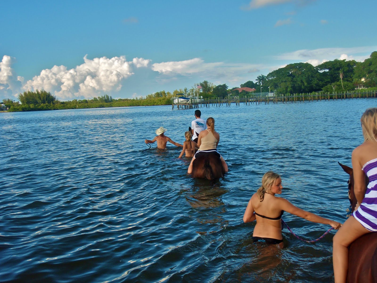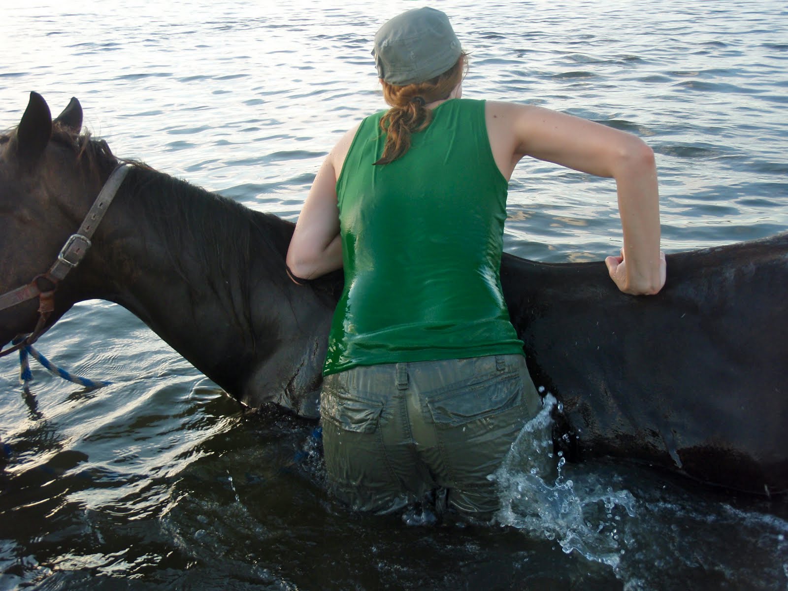The water was the perfect temperature, and the horses seemed completely at ease in it.